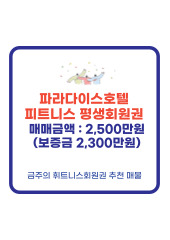 동부회원권거래소 금일 급매물 현황 / 동부회원권거래소 추천 매물 금일 급매물 현황 trending_up [콘도] 한화리조트 디럭스 무기명 등기제 28박 [콘도] 아난티 펜트하우스 제주 개인 무기명 [골프] 고성노벨CC 가족회원권 [골프] 경주신라CC 주주회원권 [콘도] 소노호텔앤리조트 패밀리 기명 공유제 [콘도] 소노호텔앤리조트 스위트 기명 공유제 [골프] 용원CC 남자회원권 [골프] 해운대CC 로얄회원권 [골프] 포웰CC 스페셜회원권 분양 [콘도] 덕유산리조트 골드창립 [콘도] 빌라쥬 드 아난티 개인 기명회원권 [골프] 통도CC [골프] 아시아드CC 지정인 1년 소멸 연회비 [골프] 동래베네스트CC 남자회원권 [콘도] 한화리조트 디럭스 무기명 회원제 30박 [골프] 고성노벨CC 지정회원권 [휘트니스] 파라다이스호텔 피트니스 고분양가 가족개인 [골프] 용원CC 남자회원권 [콘도] 소노호텔앤리조트 노블리안골드 기명 평생회원권 [골프] 포웰CC [골프] 에이원CC 지정회원권 [골프] 마우나오션CC VIP 회원권 [골프] 해운대CC 창립회원권 [골프] 가야CC 주중회원권 [콘도] 한화리조트 디럭스 무기명 회원제 [골프] 가야CC 우대회원권 [골프] 고성노벨CC 가족회원권 [콘도] 한화리조트 디럭스 기명 평생회원권 [휘트니스] 조선비치호텔 부부회원권(웨스틴조선호텔 부산) [콘도] 소노호텔앤리조트 노블리안실버 무기명 공유제 expand_less expand_more 추천 매물 동부회원권거래소에서 제공하는 추천매물 리스트 입니다. 한화리조트 디럭스 무기명 등기제 28박 희망금액 : 400만원 [구매문의] [상담신청] 아난티 펜트하우스 제주 개인 무기명 희망금액 : 13,500만원(5곳 전부 사용) [구매문의] [상담신청] 고성노벨CC 가족회원권 희망금액 : 29,700만원 [구매문의] [상담신청] 경주신라CC 주주회원권 희망금액 : 15,7000만원 [구매문의] [상담신청] 소노호텔앤리조트 패밀리 기명 공유제 희망금액 : 650만원 [구매문의] [상담신청] 소노호텔앤리조트 스위트 기명 공유제 희망금액 : 1,300만원 [구매문의] [상담신청] 용원CC 남자회원권 희망금액 : 8,800만원 [구매문의] [상담신청] 해운대CC 로얄회원권 희망금액 : 53,000만원 [구매문의] [상담신청] 포웰CC 스페셜회원권 분양 희망금액 : 5억원(입회기간 5년) [구매문의] [상담신청] 덕유산리조트 골드창립 희망금액 : 1,850만원 [구매문의] [상담신청] 빌라쥬 드 아난티 개인 기명회원권 희망금액 : 9,000만원 [구매문의] [상담신청] 통도CC 희망금액 : 7,300만원 [구매문의] [상담신청] 아시아드CC 지정인 1년 소멸 연회비 희망금액 : 600만원 [구매문의] [상담신청] 동래베네스트CC 남자회원권 희망금액 : 18,000만원 [구매문의] [상담신청] 한화리조트 디럭스 무기명 회원제 30박 희망금액 : 1,000만원(보증금 1,150만원) [구매문의] [상담신청] 고성노벨CC 지정회원권 희망금액 : 30,500만원(분 15,000만) [구매문의] [상담신청] 파라다이스호텔 피트니스 고분양가 가족개인 희망금액 : 2,000만원(분1,600만) [구매문의] [상담신청] 용원CC 남자회원권 희망금액 : 8,900만원 [구매문의] [상담신청] 소노호텔앤리조트 노블리안골드 기명 평생회원권 희망금액 : 7,500만원 [구매문의] [상담신청] 포웰CC 희망금액 : 28,500만원(분 2억) [구매문의] [상담신청] 에이원CC 지정회원권 희망금액 : 39,500만원(분 15,000만) [구매문의] [상담신청] 마우나오션CC VIP 회원권 희망금액 : 22,000만원(분 9,500만원) [구매문의] [상담신청] 해운대CC 창립회원권 희망금액 : 15,000만원(분 1억) [구매문의] [상담신청] 가야CC 주중회원권 희망금액 : 9,300만원 [구매문의] [상담신청] 한화리조트 디럭스 무기명 회원제 희망금액 : 1,000만원(보증금 1,190만원) [구매문의] [상담신청] 가야CC 우대회원권 희망금액 : 17,500만원 [구매문의] [상담신청] 고성노벨CC 가족회원권 희망금액 : 19,000만원(분 13,000만) 급매물 [구매문의] [상담신청] 한화리조트 디럭스 기명 평생회원권 희망금액 : 350만원 [구매문의] [상담신청] 조선비치호텔 부부회원권(웨스틴조선호텔 부산) 희망금액 : 3,500만원(보증금 3,000만원) [구매문의] [상담신청] 소노호텔앤리조트 노블리안실버 무기명 공유제 희망금액 : 8,300만원 [구매문의] [상담신청]